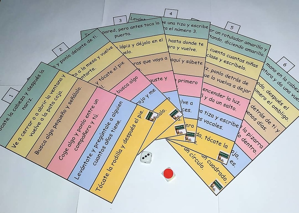 🔺Las órdenes las podemos dar nosotros o también se las pueden dar entre los alumnos. Con dos DADOS (de números y colores, sabremos la orden que nos toca)